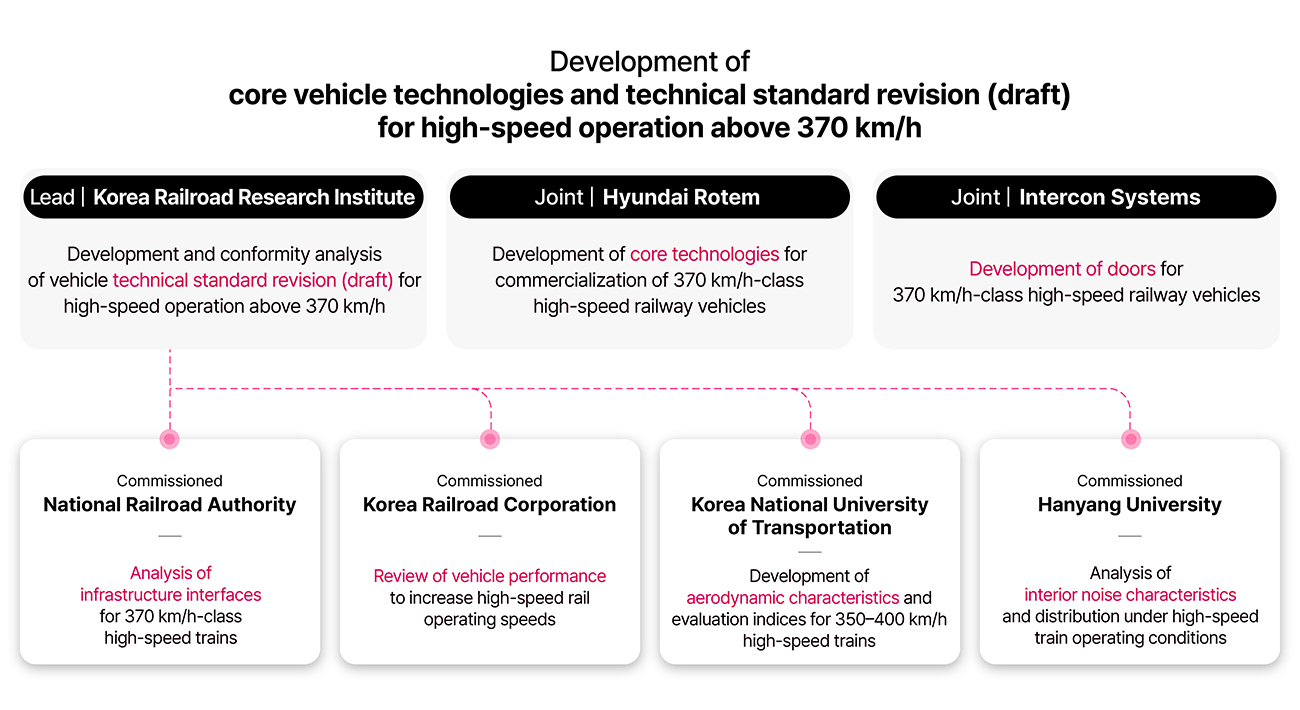 A total of seven organizations — including public institutions and private companies — participated in this project, with the Korea Railroad Research Institute serving as the lead organization. Hyundai Rotem contributed to the development of key rolling stock technologies, including aerodynamic shape optimization, high-output propulsion systems, and noise and vibration reduction technologies designed to maximize quietness. Building upon these advancements, Korea has secured a commanding technological edge to drive the global ultra-high-speed rail industry.